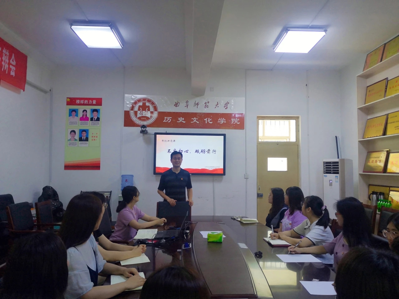 6月23日下午,在2021届毕业生党员离校前期,成人短视频 研究生党支部“书记讲党课”活动暨“不忘初心,砥砺前行”毕业生党员主题党日活动,在文史楼204会议室举办。会议由研究生党支部书记孙锋同志主持,全体党员参加会议。