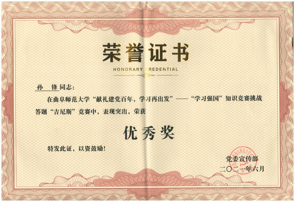 在本次活动的“学习强国”双周积分排名赛中,成人短视频 党委以56.44的平均分取得了全校第一的好成绩,同时,成人短视频 孙锋老师在“学习强国”挑战答题“吉尼斯”中荣获优秀奖。