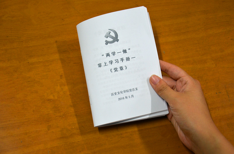 第二阶段王建阳带领全体党员学习了党章。了方便党员随时学习党章、掌握学习计划,支委专门设计制作了《成人短视频 “两学一做”掌上学习手册》,手册内容包括党章、学习计划、我校发展党员流程等材料。
