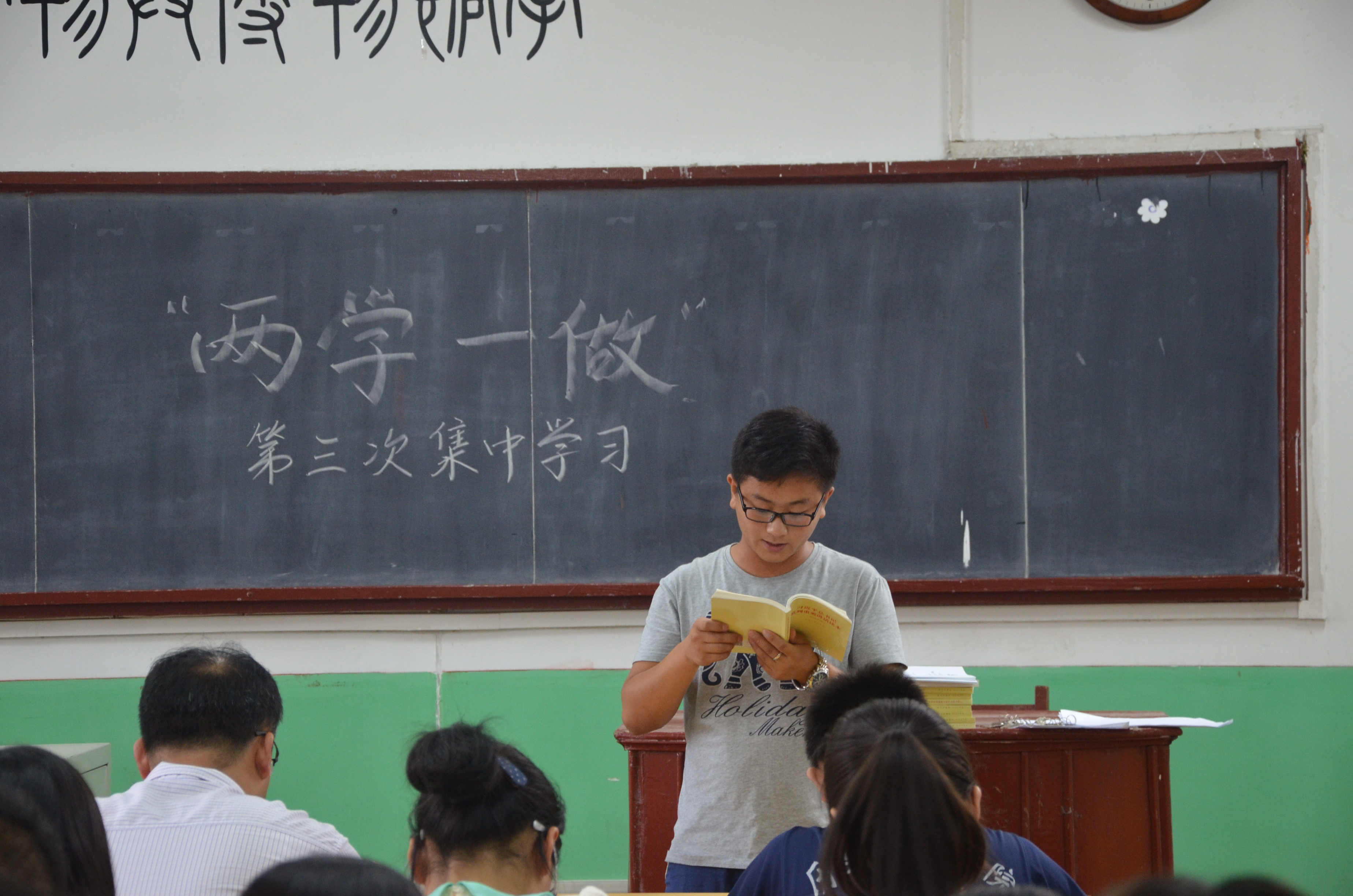 会上,党员们在刘学通、江敏巧等同学的带领下通学了《习近平总书记系列重要讲话读本》的第七章。支部书记王建阳总结了近期的学习活动,要求同学们要从思想上重视此次“两学一做”学习教育,要认真学,用心学。