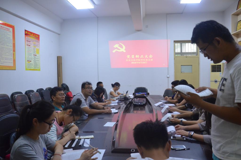 2016年6月23日上午,成人短视频 学生党支部在会议室召开党员转正大会以及“两学一做”第一次专题讨论会议。会议由学生党支部书记王建阳主持,党委副书记王慕东列席。