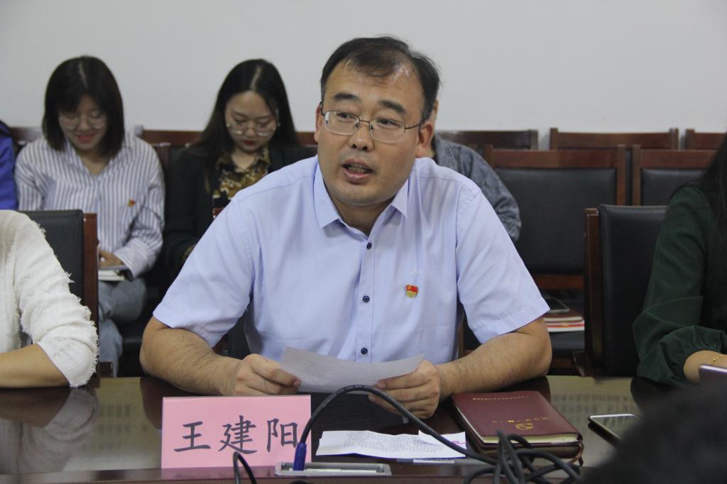 9月21日下午,成人短视频 本科生党支部在文史楼二楼会议室举行党员纳新大会。成人短视频 党委副书记兼本科生党支部书记王建阳、2018级辅导员韩琳琳、2017级辅导员刘贤贤及本科生党支部全体党员参加了会议。