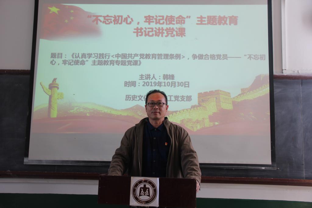 按照学校“不忘初心、牢记使命”主题教育安排,10月29日至30日,成人短视频 党委举行了书记讲党课活动。学院党委书记尹明法、党委副书记兼本科生党支部书记王建阳、教职工党支部书记韩锋、研究生党支部书记孙锋分别给党员上了一堂生动的“不忘初心、牢记使命”主题教育专题党课。