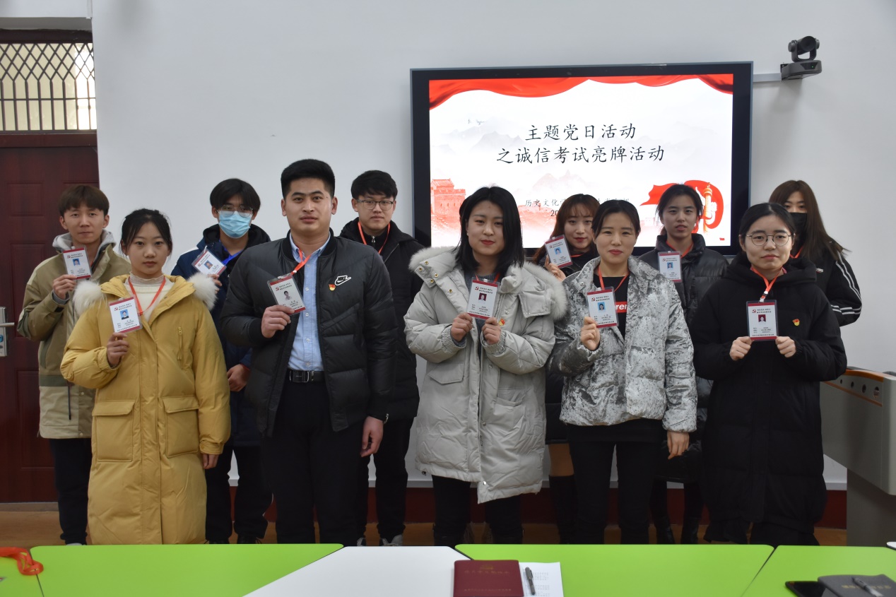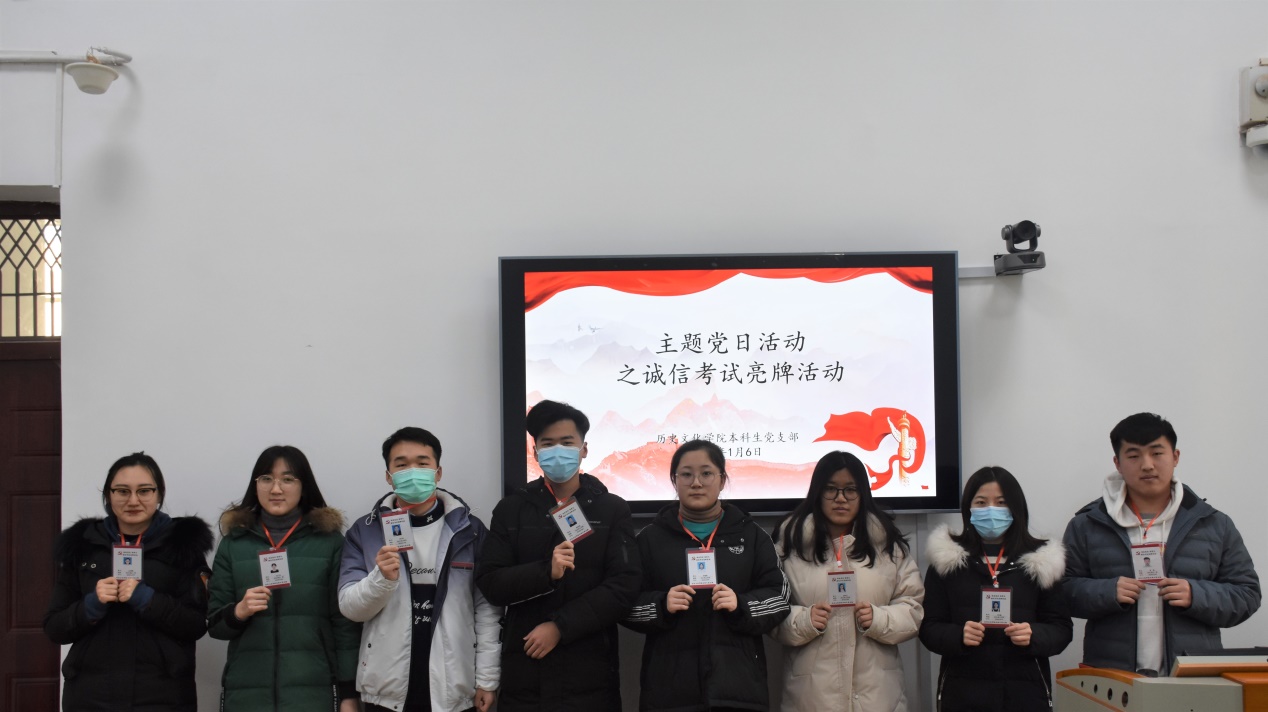 1月6日下午,成人短视频 本科生党支部在文史楼505教室开展一月份主题党日活动之“我是党员,我带头”诚信考试亮牌活动。活动由成人短视频 本科生党支部书记蔺琦琦主持,本科生党支部全体党员参加会议。