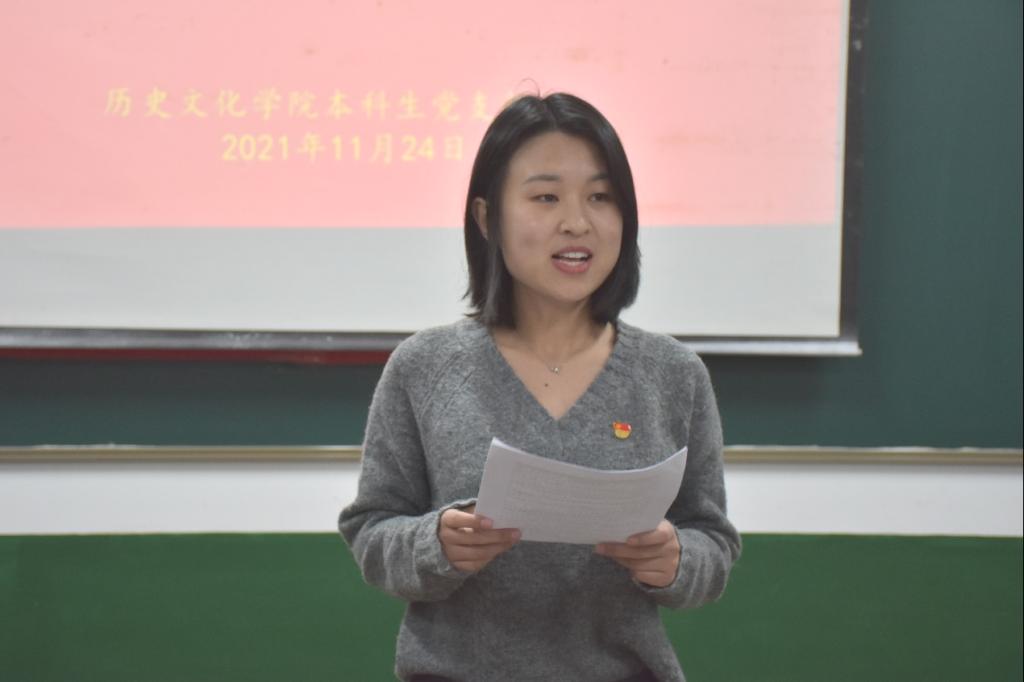 11月24日晚,成人短视频 本科生党支部在文史楼102教室召开补选委员党员大会。会议由本科生党支部书记蔺琦琦同志主持。