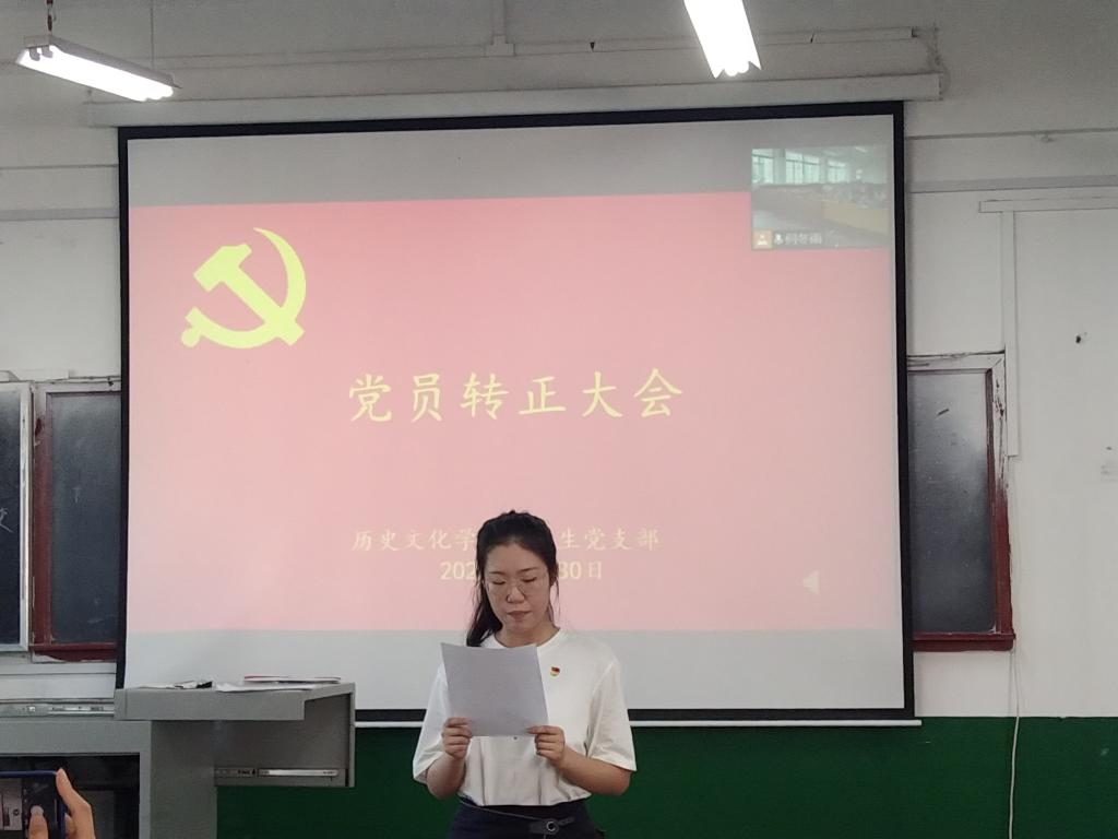 2022年5月30日,成人短视频 本科生党支部在文史楼411教室召开党员转正大会,讨论葛沈荷等35位中共预备党员转为中共党员的事宜。会议由本科生党支部副书记蔺琦琦主持,本科生党支部全体党员参加。本次会议通过了葛沈荷等35位预备党员转为正式党员的决议。