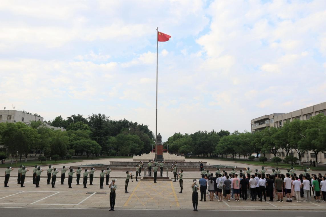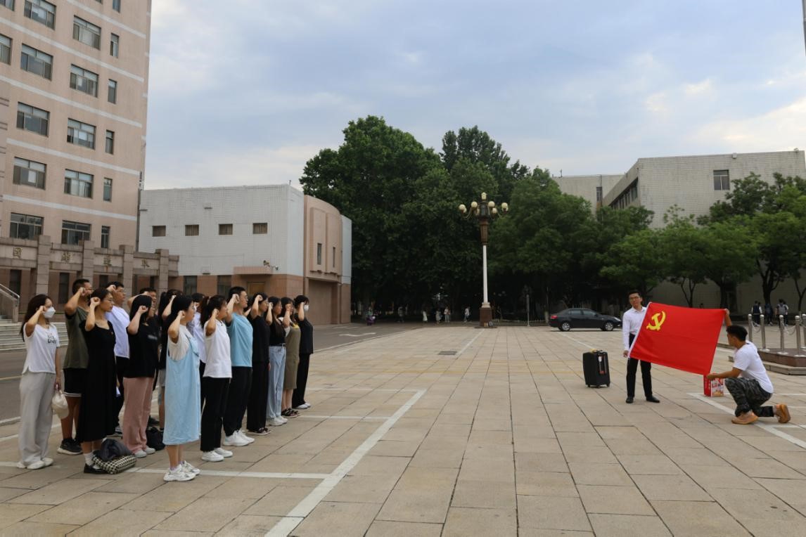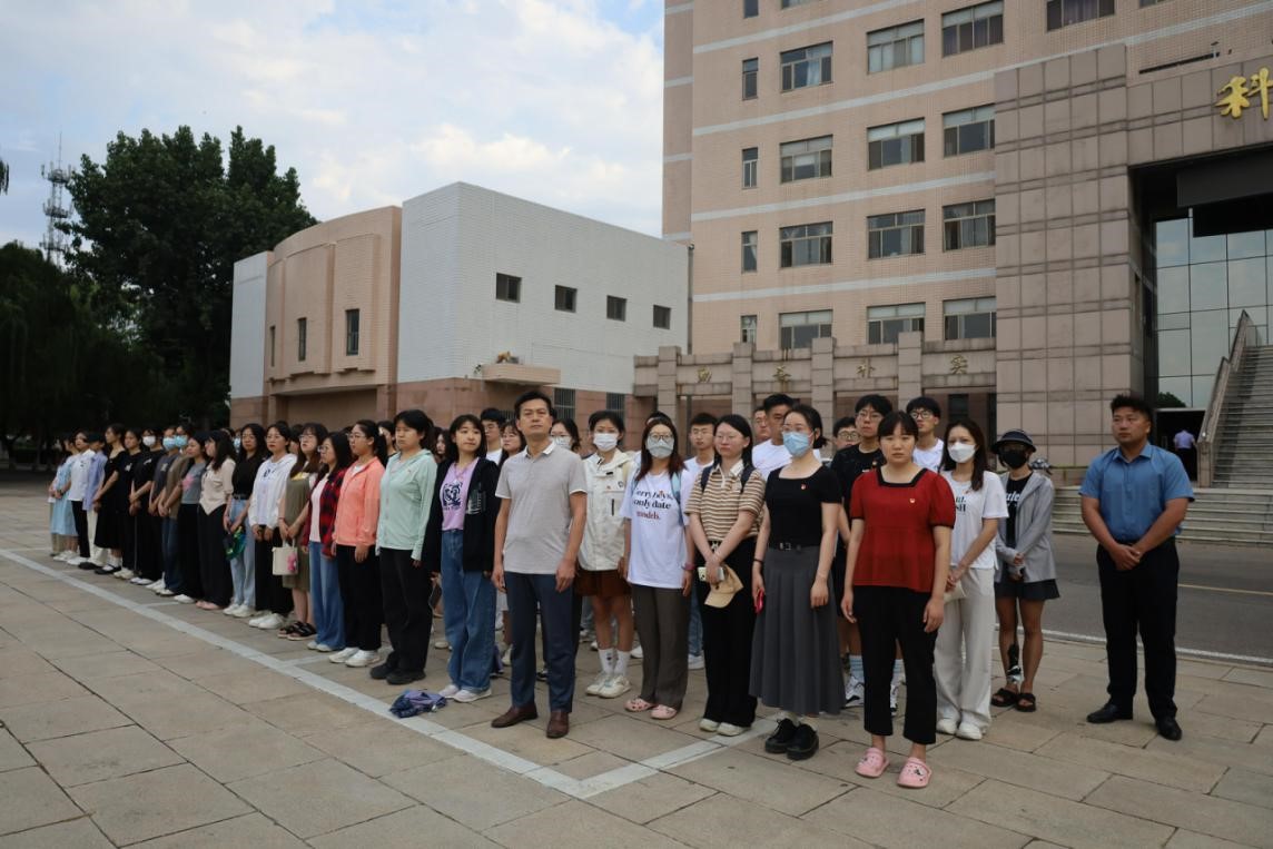 2023年6月12日上午,成人短视频 本科生党支部和研究生党支部于学校科技楼前开展重温入党誓词活动暨毕业生党员“七个一”系列活动——观看升旗仪式。本科生党支部和研究生党支部全体毕业生党员参加此次活动。