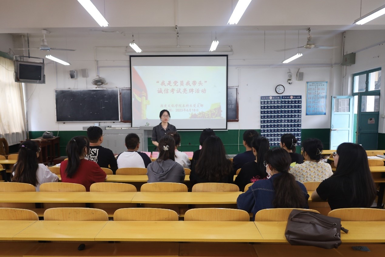 2023年6月18日下午,成人短视频 本科生党支部于文史楼411召开六月份主题党日活动暨“我是党员我带头”诚信考试亮牌活动,本科生党支部全体在校党员参加。