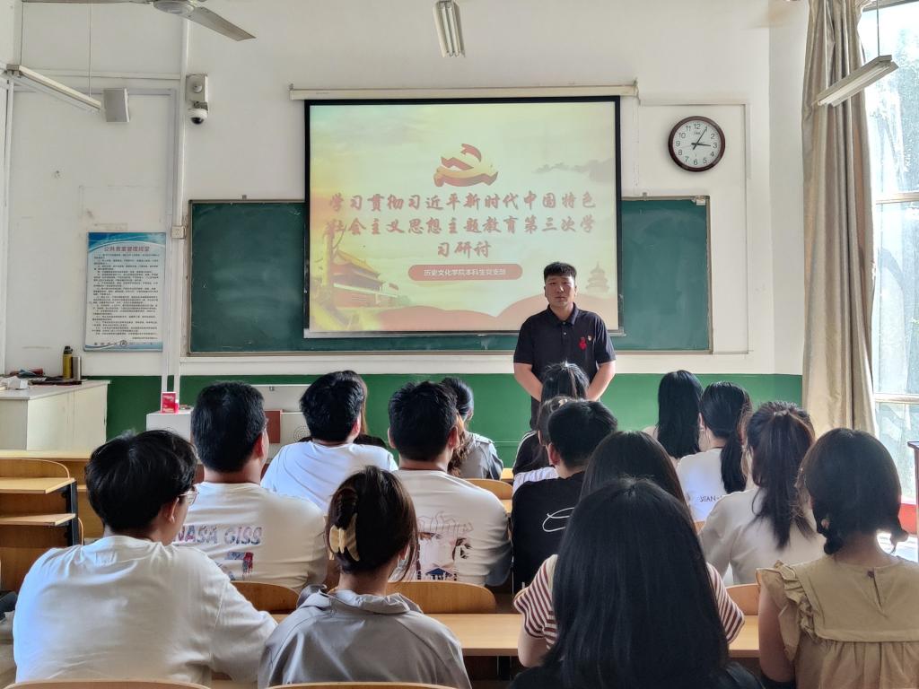 2023年5月28日下午,成人短视频 本科生党支部于文史楼309开展学习贯彻习近平新时代中国特色社会主义思想主题教育第三次学习研讨。本次理论学习的主要内容是《学好用好习近平新时代中国特色社会主义思想的世界观和方法论》和《深刻领会“六个必须坚持”继续推进实践基础上的理论创新》。本次会议由本科生第三党支部书记董经同志主持,本科生党支部全体党员同志参加,学院党委副书记王建阳同志现场督导党员同志学习情况。