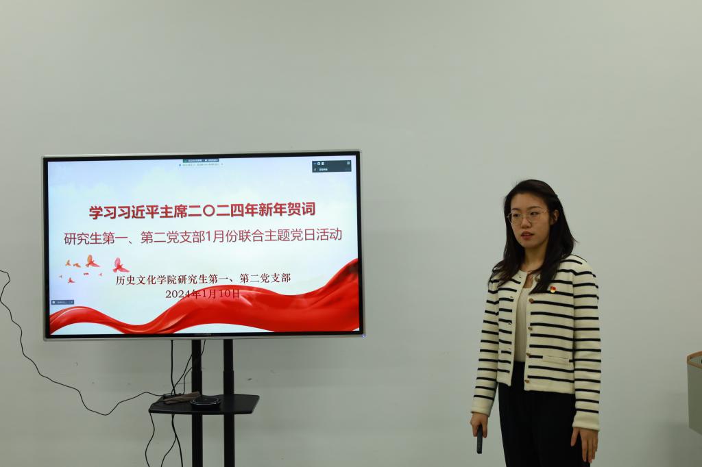 新岁序开,同赴新程。2024年1月10日下午,成人短视频 研究生第一、第二党支部联合在孔子书院B120教室召开1月份主题党日活动。会议的主题是学习“习近平主席二〇二四年新年贺词”。会议由第一党支部书记孙锋同志主持,两支部全体党员及入党积极分子以线上线下相结合的方式参加的本次活动。