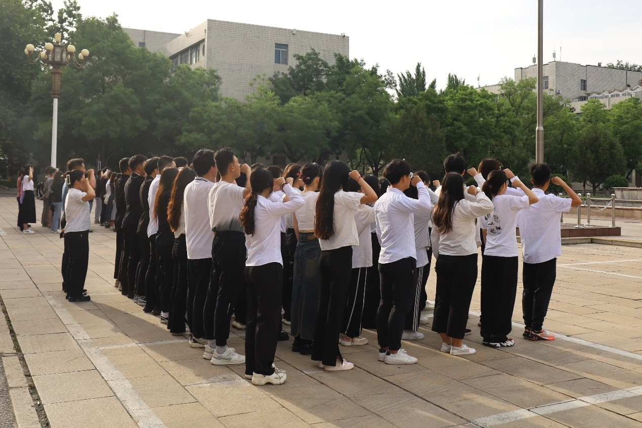 2024年5月27日上午,成人短视频 本科生第一、二、三党支部在孔子文化广场联合开展毕业生“七个一”系列活动—观看升旗仪式和重温入党誓词活动。本科生第一、二、三党支部全体毕业生党员参加本次活动。