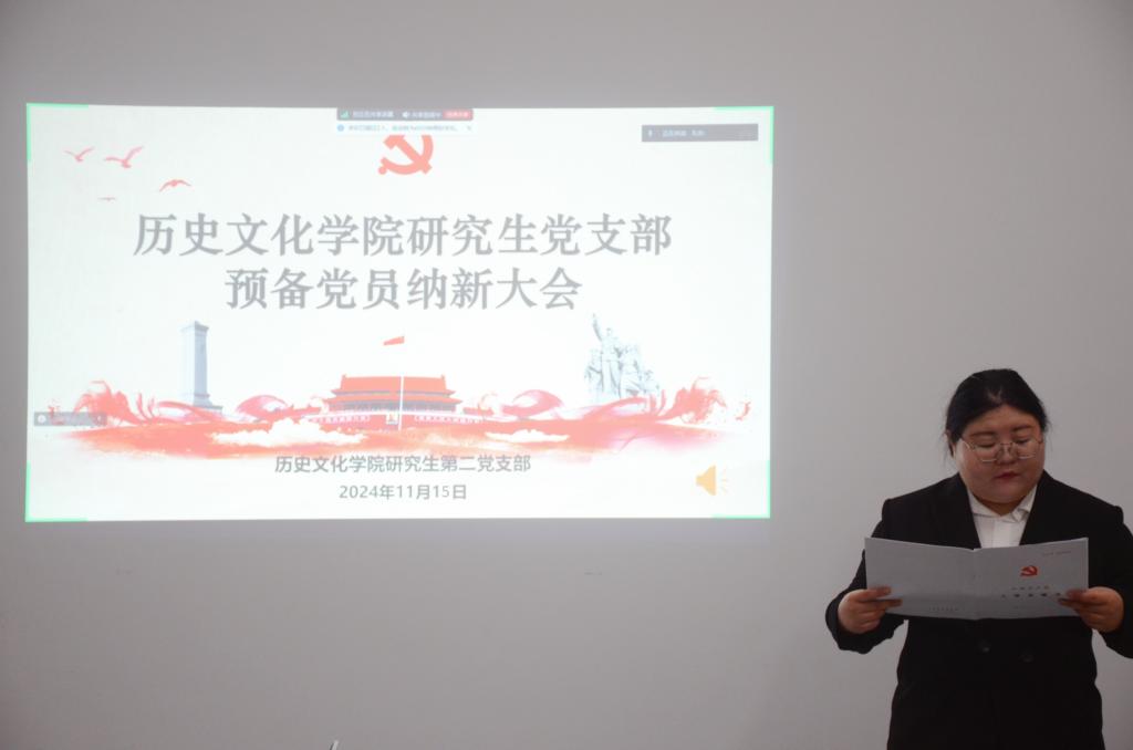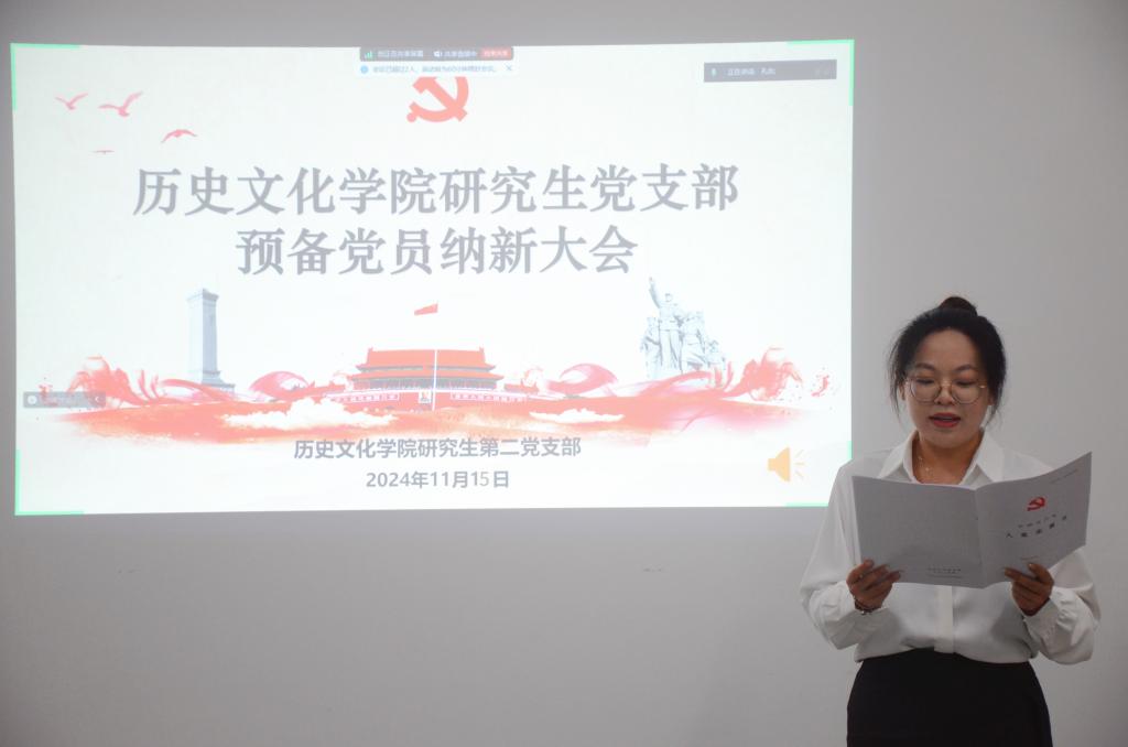 2024年11月15日下午,成人短视频 研究生第二党支部在孔子书院B103教室举行党员纳新大会,会议讨论表决了2024年下半年研究生第二党支部预备党员接收问题。支部全体在校党员参加了本次会议,部分不在校党员线上参加。会议由党支部书记孔会主持。