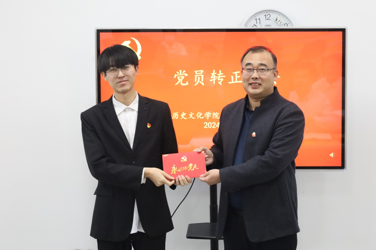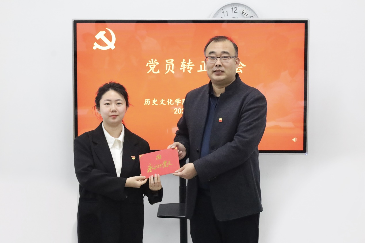 会上,王建阳为5位转正同志颁发了政治生日贺卡。王建阳勉励同志们要珍惜党员身份,切实扛牢党员责任,继续坚守“优秀是一种习惯”的工作作风,谦虚谨慎,戒骄戒躁,充分发挥史院先锋的模范带头作用。