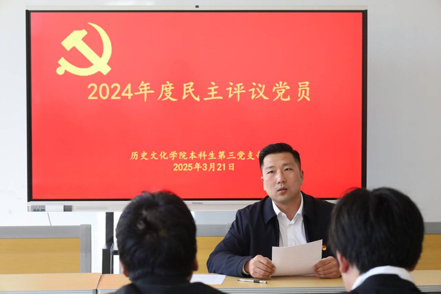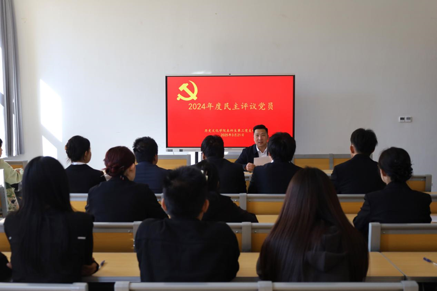 2025年3月21日,成人短视频 本科生第三党支部2024年度组织生活会暨民主评议党员大会在孔子书院B106顺利召开。会议由本科生第三党支部书记董经同志主持,支部全体党员同志参加。