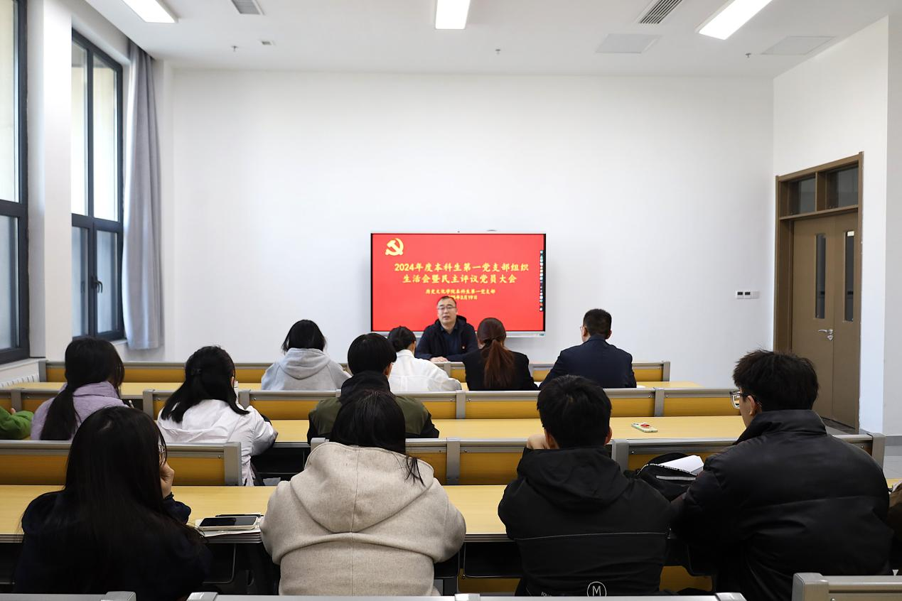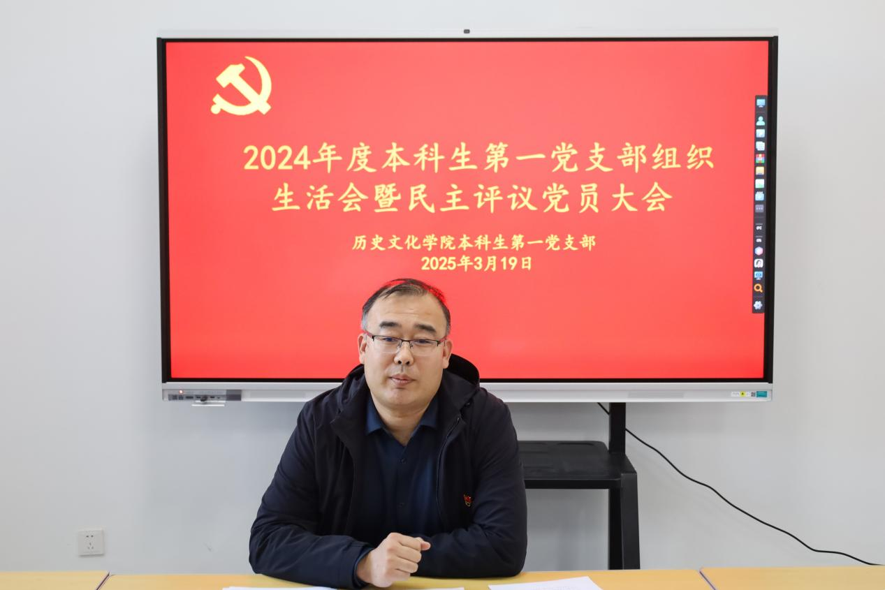 2025年3月19日,成人短视频 本科生第一党支部于孔子书院B104会议室召开2024年度组织生活会暨民主评议党员大会,会议由支部书记王建阳主持,支部全体党员参加。