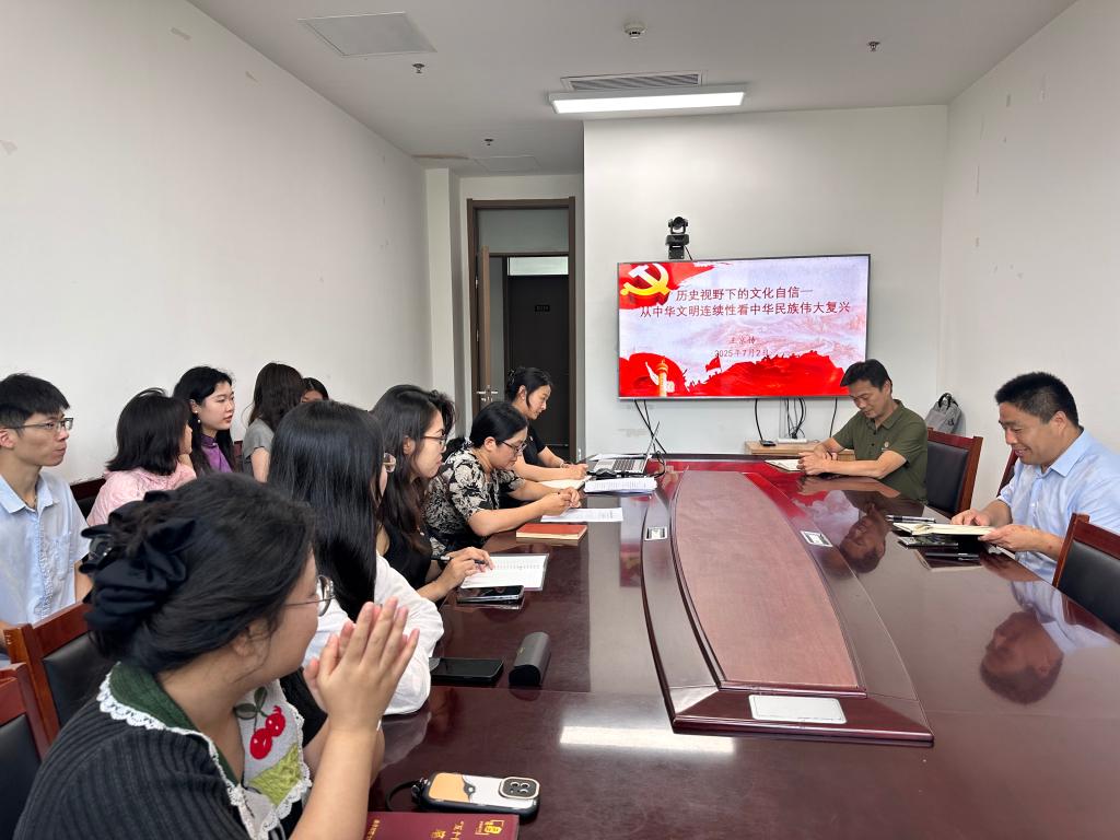 7月2日下午,学院副院长王京传(主持工作)以《历史视野下的文化自信 —— 从中华文明连续性看中华民族伟大复兴》为题,为中国史专业研究生上了一堂深刻而生动的思政课。