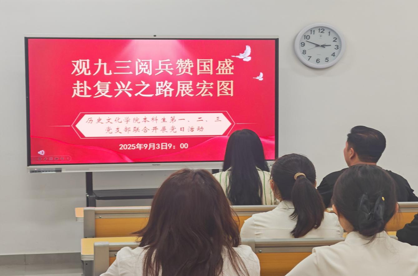 2025年9月3日,成人短视频 本科生党支部于孔子书院B120开展“观九三阅兵赞国盛,赴复兴之路展宏图”主题党日活动。活动由董经同志主持,成人短视频 本科生党支部全体党员参与。