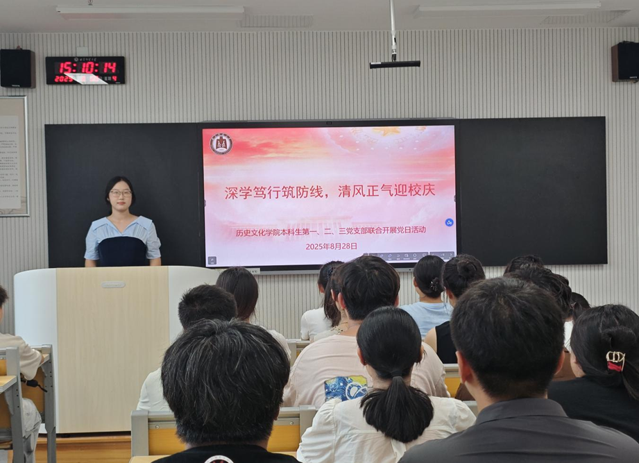 2025年8月28日,成人短视频 本科生第一、二、三党支部于致知楼B303联合开展“深学笃行筑防线,清风正气迎校庆”主题党日活动。活动由董经同志主持,成人短视频 本科生第一、二、三党支部全体党员参与。