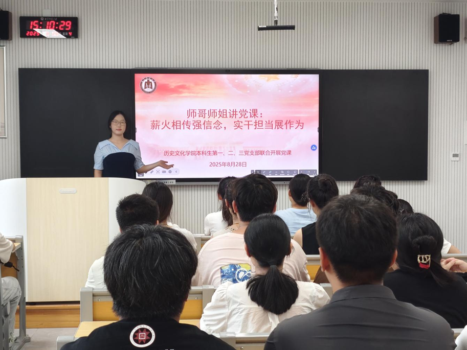 2025年8月28日,成人短视频 本科生第一、二、三党支部于致知楼B303联合召开“‘师哥师姐讲党课’之薪火相传强信念,实干担当展作为”主题党日活动。本次活动由董经同志主持,本科生第一、二、三党支部全体党员参加。
