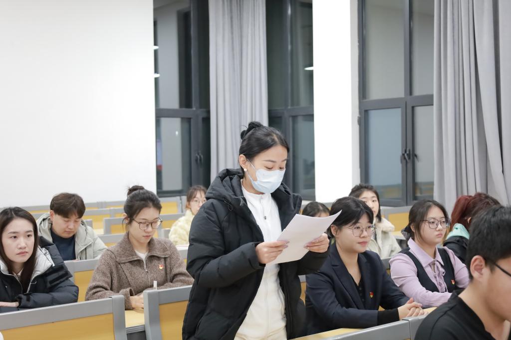 会上,研究生第二党支部孔会、第三党支部赵政华结合自己的学习工作,分别就《关于〈中共中央关于制定国民经济和社会发展第十五个五年规划的建议〉的说明》和“习近平给天津大学、中国农业大学全体师生的回信”谈了自己的学习体会。孙锋对本次活动进行了总结,希望全体党员同志持续深入学习贯彻党的二十届四中全会精神和习近平总书记回信精神,提高人才培养质量,努力培养更多专业人才,为建设教育强国科技强国、推进中国式现代化作出自己的贡献。