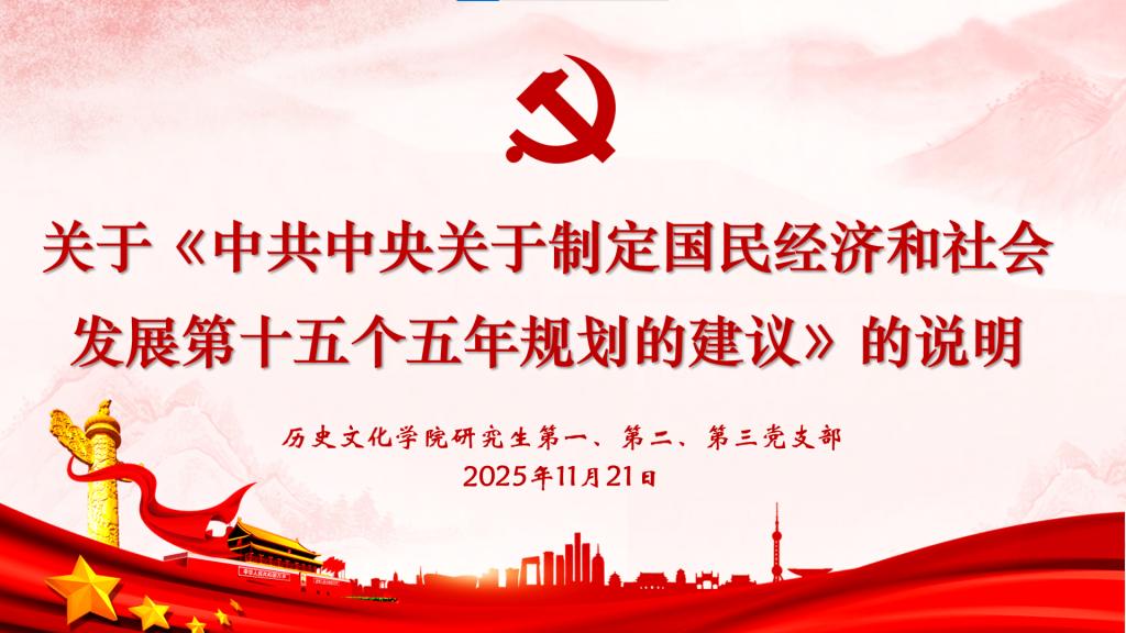 本次主题党日活动的主题是学习习近平总书记在2025年第21期《求是》杂志上发表的重要文章——《关于〈中共中央关于制定国民经济和社会发展第十五个五年规划的建议〉的说明》,由研究生第三党支部组织委员李美琪领学。习近平指出,制定中长期规划指导经济社会发展,是我们党治国理政的一种重要方式。研究制定好“十五五”规划,对于推动我国经济社会持续健康发展,为如期基本实现社会主义现代化奠定更加坚实的基础,具有重大意义。在《建议》稿起草过程中,应注意把握以下几点:坚持目标导向和问题导向,坚持系统思维,坚持进一步全面深化改革,坚持扩大对外开放。习近平还就“十五五”时期的重要地位、“十五五”时期经济社会发展目标、以推动高质量发展为主题、做强国内大循环、畅通国内国际双循环、全体人民共同富裕迈出坚实步伐、统筹发展和安全、坚持党的全面领导等七个重点问题作了说明。