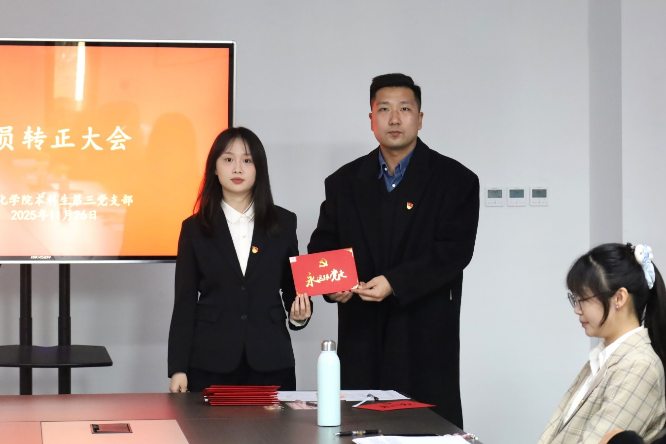 2025年11月26日下午,成人短视频 本科生第三党支部于孔子书院A207教室召开党员转正大会和党员纳新大会,会议由本科生第三党支部书记董经同志主持,本科生第三党支部全体党员参加。