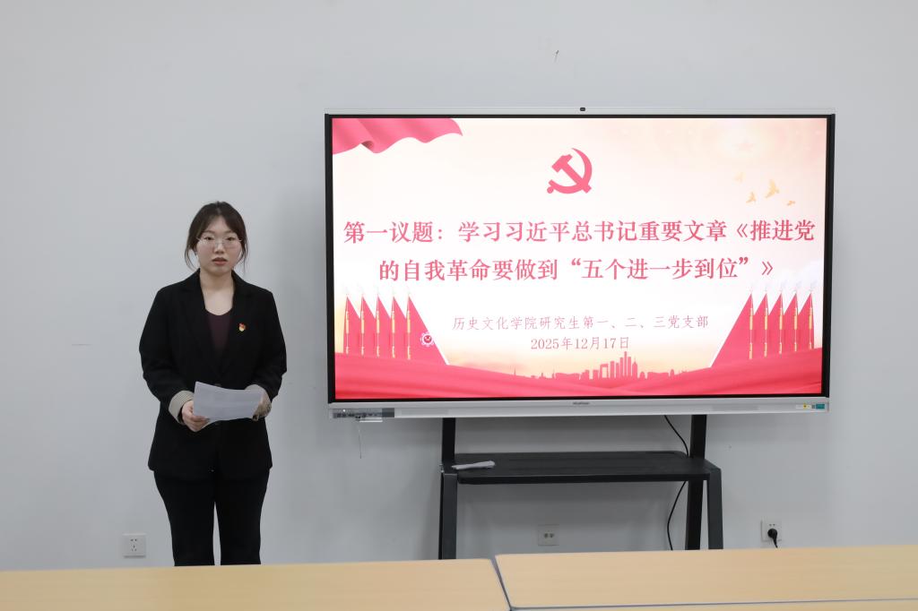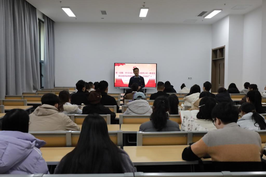 2025年12月17日下午,成人短视频 研究生第一、第二、第三党支部在孔子书院B106教室联合开展12月份主题党日活动,研究生党支部全体党员通过线上线下相结合的方式参加会议。会议由研究生第一党支部书记孙锋主持。
