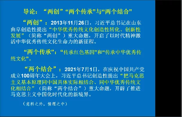 随后,金刚教授正式开始了本次的学术讲座。金刚教授首先对会议主题作了简要的总结,并着重阐释了习近平主席在最近几年中关于“两创”、“两个传承”和“两个结合”的论述。金刚教授认为习近平主席的谈话中表达出了在新时代中国将大力推进“两创”和“两个结合”的建设的愿景;同时这也是课题研究的意义所在。