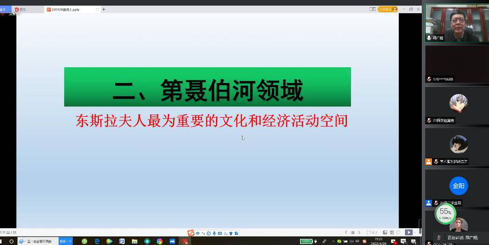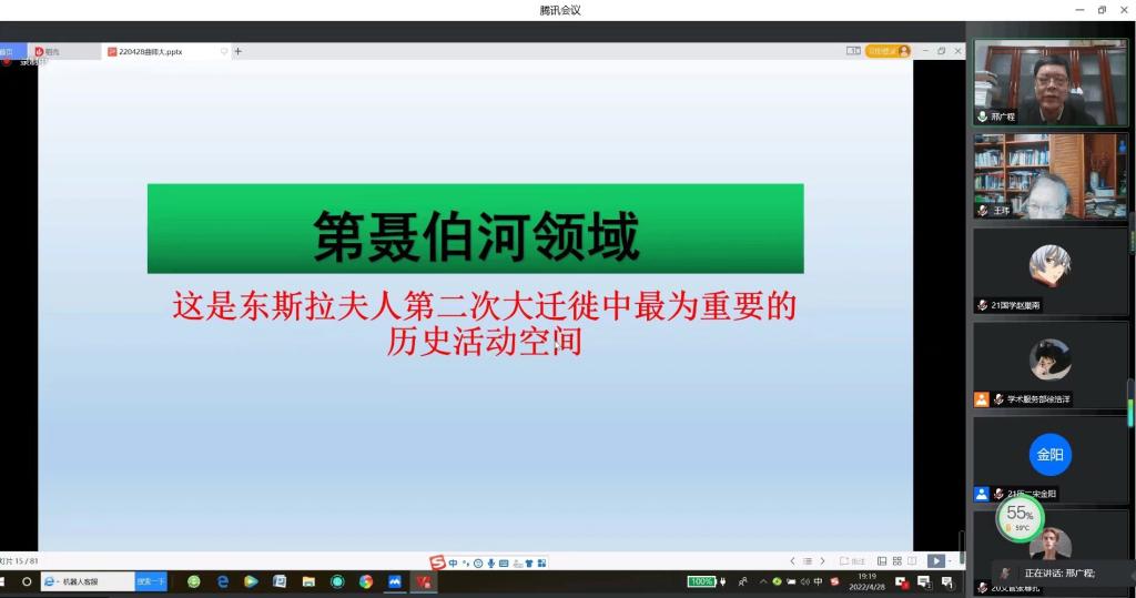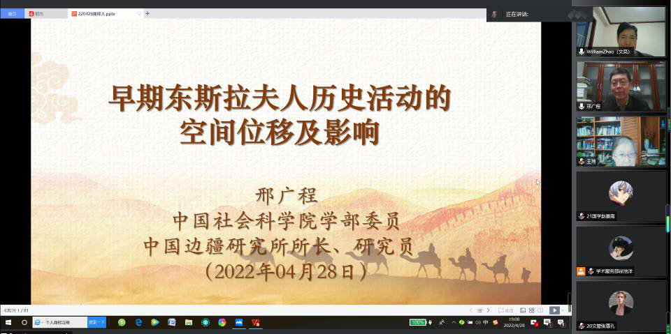 4月28日晚,中国社会科学院学部委员,中国社会科学院中国边疆研究所所长、研究员邢广程研究员作客“洙泗讲堂”,通过腾讯会议为成人短视频 师生作了题为《早期东斯拉夫人历史活动空间的位移及影响》的学术报告。讲座由赵文亮教授主持,北京师范大学张建华教授、我校特聘教授王玮先生担任评议人,学院相关专业师生及线上来自全国各地的听众共400余人参加了此次会议,会议内容十分精彩。