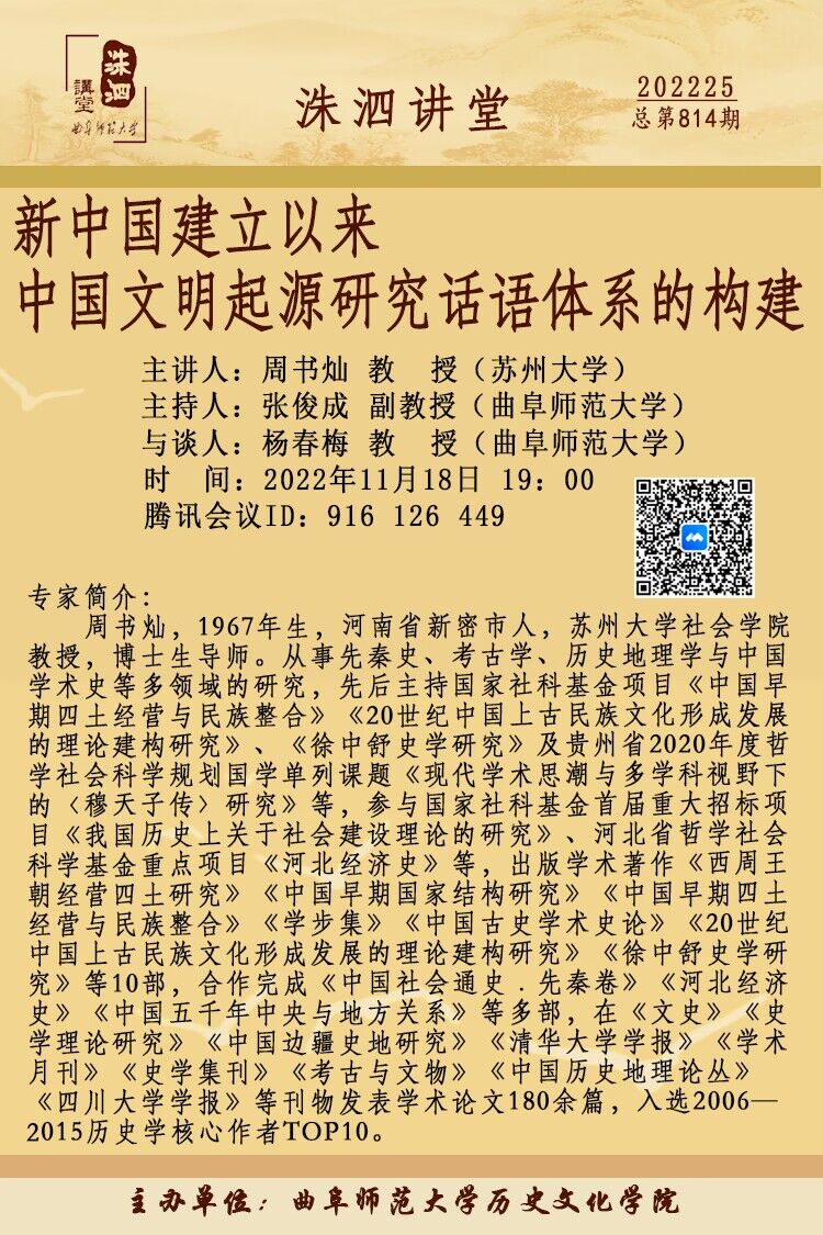 洙泗讲堂预告 | 周书灿:新中国建立以来中国文明起源研究话语体系的建构