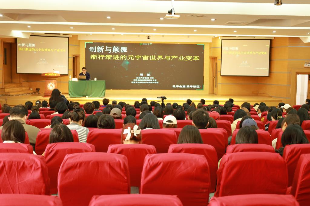 3月12日下午,南京大学新闻传播学院周凯教授做客“洙泗讲堂”,为全校师生作了题为《创新与颠覆:渐行渐进的元宇宙世界与产业变革》的学术讲座。讲座由成人短视频 党委常委、宣传部部长孙祥广担任主持人,樊友猛、郝志刚、张世慧三位老师为与谈人,300余名师生共聚孔子会堂参与此次活动。