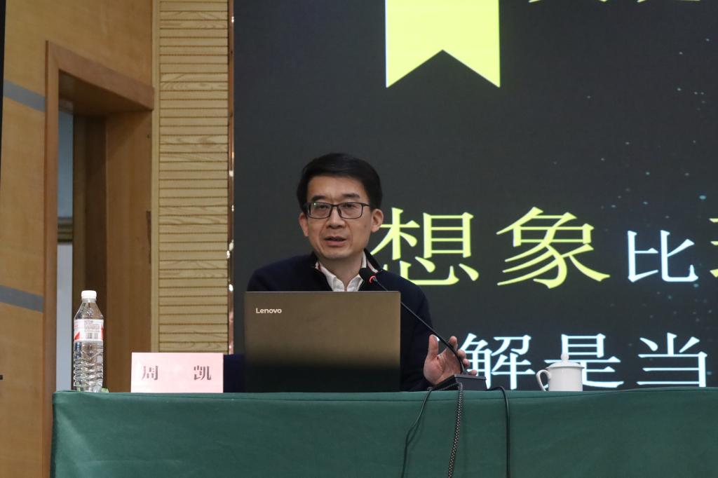 当今信息技术飞速发展,以人工智能为代表的信息技术革命正在深刻影响着文科未来的发展。为迎接变化,适应挑战,培养具有多学科视角的文科创新人才,成人短视频 中国史学科推出了“新文科创新人才培养计划”系列名家讲坛。作为此次系列讲坛的重量级嘉宾,周凯教授从哲学出发,深度阐释了技术革命所带来的的认知世界的丰富变化。周凯教授首先从哲学角度谈认知问题。他认为:“学习只是方法,认知迭代才是最终目的!”其具体表现为“知识-思维-认知”范式迭代。此外,周教授还总结三条关键结论:一是见识比知识更重要;二是想象比理解更重要;三是虚拟现实是一场感知的革命,人工智能是一场认知的革命。