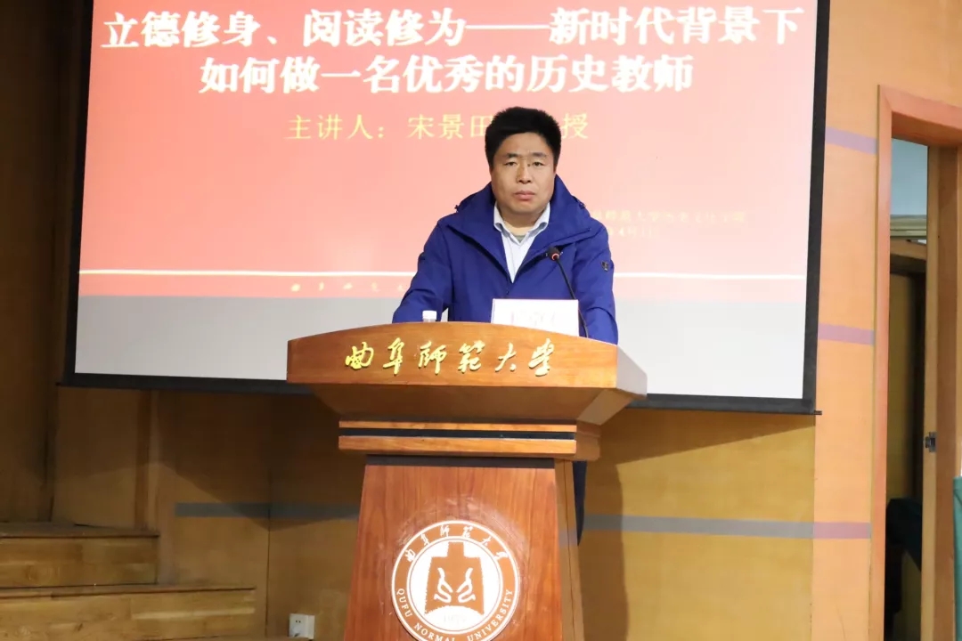 4月1日上午,成人短视频 “洙泗讲堂·中学历史教学名师进曲园”系列讲座开讲。本次讲座题目为《立德修身,阅读修为——新时代背景下如何做一名优秀的历史教师》,由北京市朝阳区教科院教授、北京市特级教师、山东省特级教师宋景田老师担任主讲,王京传老师主持,学院师生和全国热心听众200余人在线上、线下同时听讲。