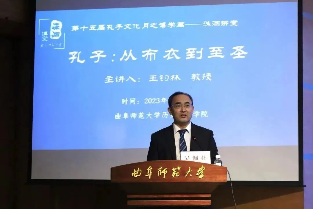 为宣传贯彻党的二十大精神,纪念习近平总书记视察曲阜并发表重要讲话十周年,落实学校第九次党代会关于弘扬传承优秀传统文化、构筑文化两创新高地的要求,推动“新文科人才培养计划”深入开展,4月6日上午,成人短视频 在孔子会堂隆重举行第十五届孔子文化月启动仪式暨首场专家讲座,邀请成人短视频 特聘教授、孔子文化研究院院长王钧林教授作了题为《孔子:从布衣到至圣》的学术报告。讲座由成人短视频 院长吴佩林教授担任主持人,刘伟教授担任与谈人,300余名师生共聚孔子会堂参与此次活动。
