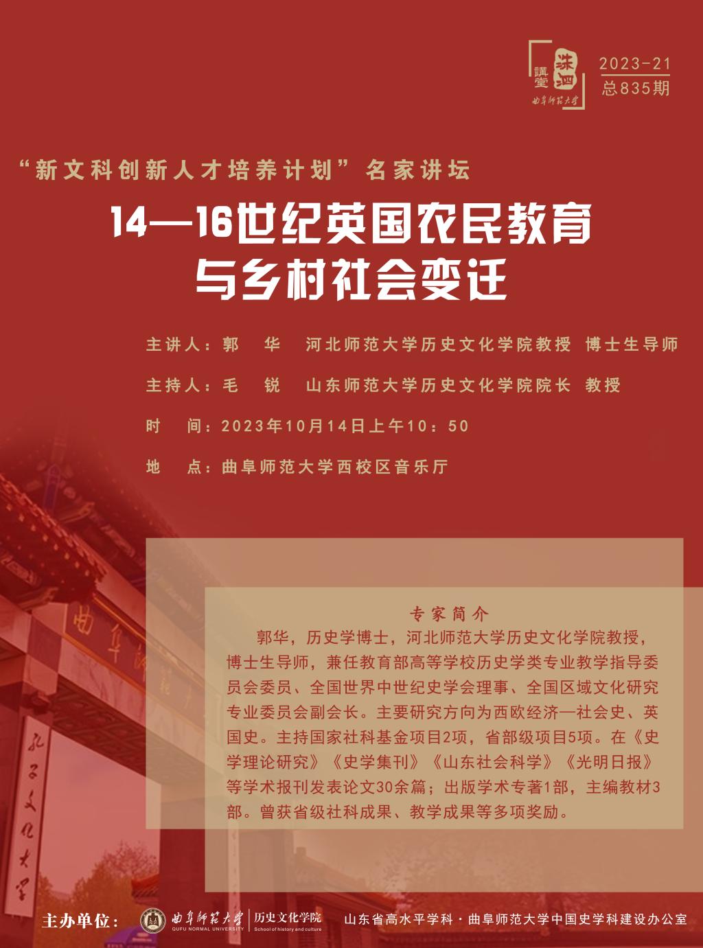 名家讲坛预告|郭华:14一16世纪英国农民教育与乡村社会变迁