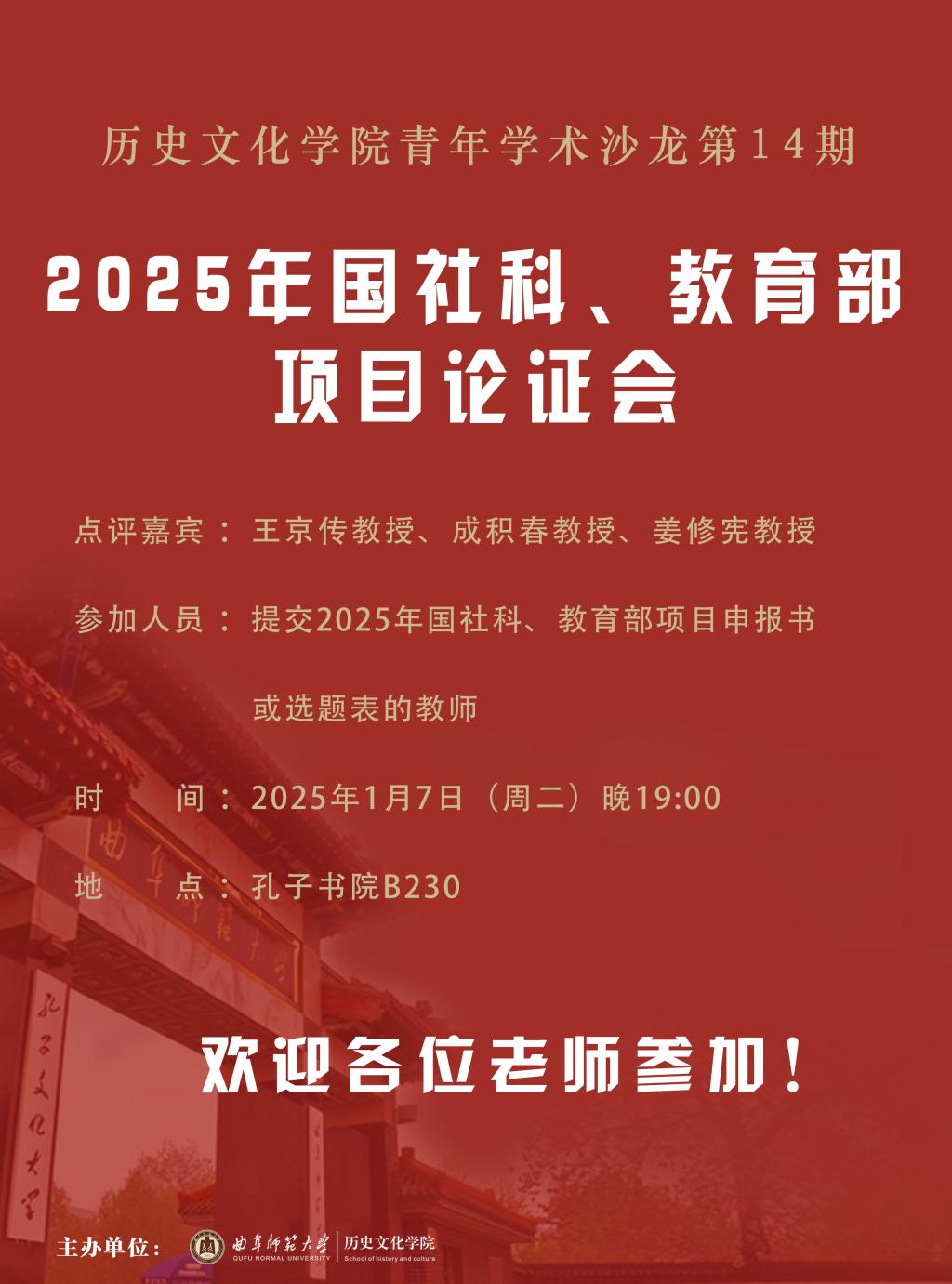 青年学术沙龙第14期:“2025 年国社科、教育部项目论证...