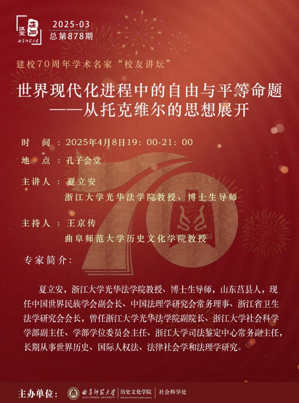 洙泗讲堂预告|夏立安:世界现代化进程中的自由与平等命题——从托克维尔的思想展开