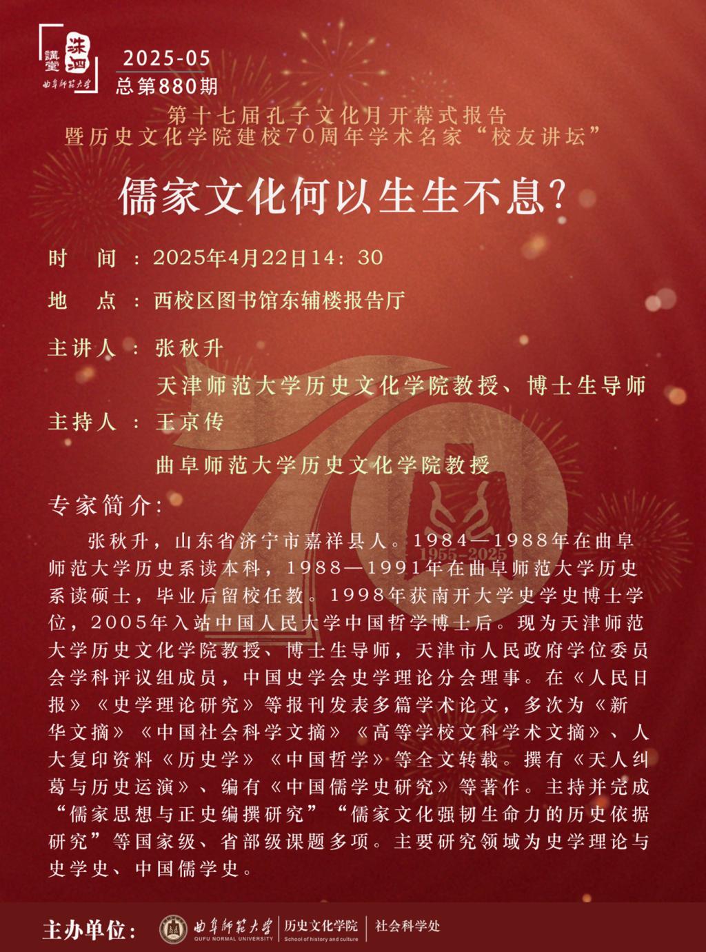 洙泗讲堂预告|张秋升:儒家文化何以生生不息?