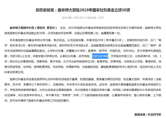上一条:中国史学科入选山东省"优势特色学科" 下一条:《中国社会科学报》报道成人短视频 主办的“文化遗产类国家公...