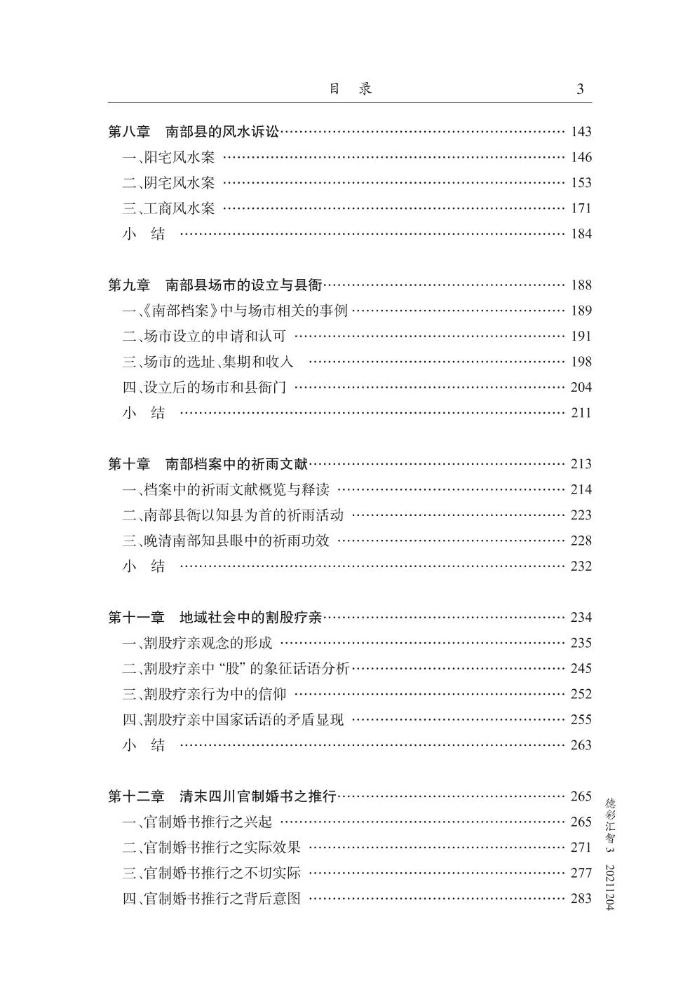 2015年8月,我有幸得到科大卫教授的邀请,赴香港中文大学历史人类学研究中心访学。在我准备《国家在“场”:清代四川南部县场市之兴设与管理》讲座期间,历史系邱澎生教授告诉我,日本学者泷野正二郎有相关成果发表。后经其引荐,我获得了该文的翻译授权。当年年底,我在着手整理清代州县衙门内部组织“三班六房”文献时,又发现日本学者小野达哉发表过一篇关于巴县户房的论文。通过当时正在京都大学访学的杜金副教授介绍,得以结识小野老师。对于明清时期的日文论著,我大体能看懂,但关键之处仍拿捏不准,我便联系了西华师范大学外国语学院的薛云虹老师,请她主译,将两文翻译成中文。2016年7月7日,我收到美国哥伦比亚大学Madeleine Zelin(曾小萍)教授的博士生Tristan G. Brown(张仲思)的邮件,说他正在利用《南部档案》研究南部县的坟地与风水问题,希望有交流的机会。收到邮件后,我便邀请他来南充考察,并以《清代南部档案中的风水纠纷》为主题作了一场学术报告。第八章《南部县的风水诉讼》即是在这次报告基础上写就的,该文翻译由麦吉尔大学东亚系博士候选人王志锋完成。独学无友,则孤陋寡闻。与国内外学者的交流合作是一个愉快的过程,我获益良多。此次出版,又得到他们同意,将其研究成果收入,为本书增色不少。对此,我谨致以诚挚的谢意。需要说明的是,基于本书结构统筹与内容安排,我在统稿过程中,对相关章节的行文与注释略有处理,不妥之处,还望海涵。