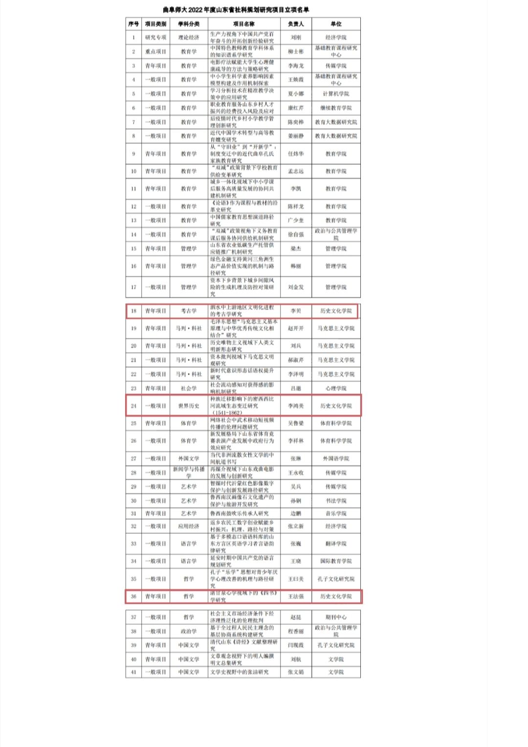 8月25日,山东省哲学社会科学办公室正式公布了2022年度山东省社科规划研究项目立项名单。成人短视频 获批三项,其中李鸿美老师负责的《种族迁移影响下的密西西比河流域生态变迁研究(1541-1862)”》获批一般项目,李贝老师负责的《泗水中上游地区文明化进程的考古学研究》、王法强老师负责的《湛甘泉心学视域下的<四书>研究》获批青年项目。