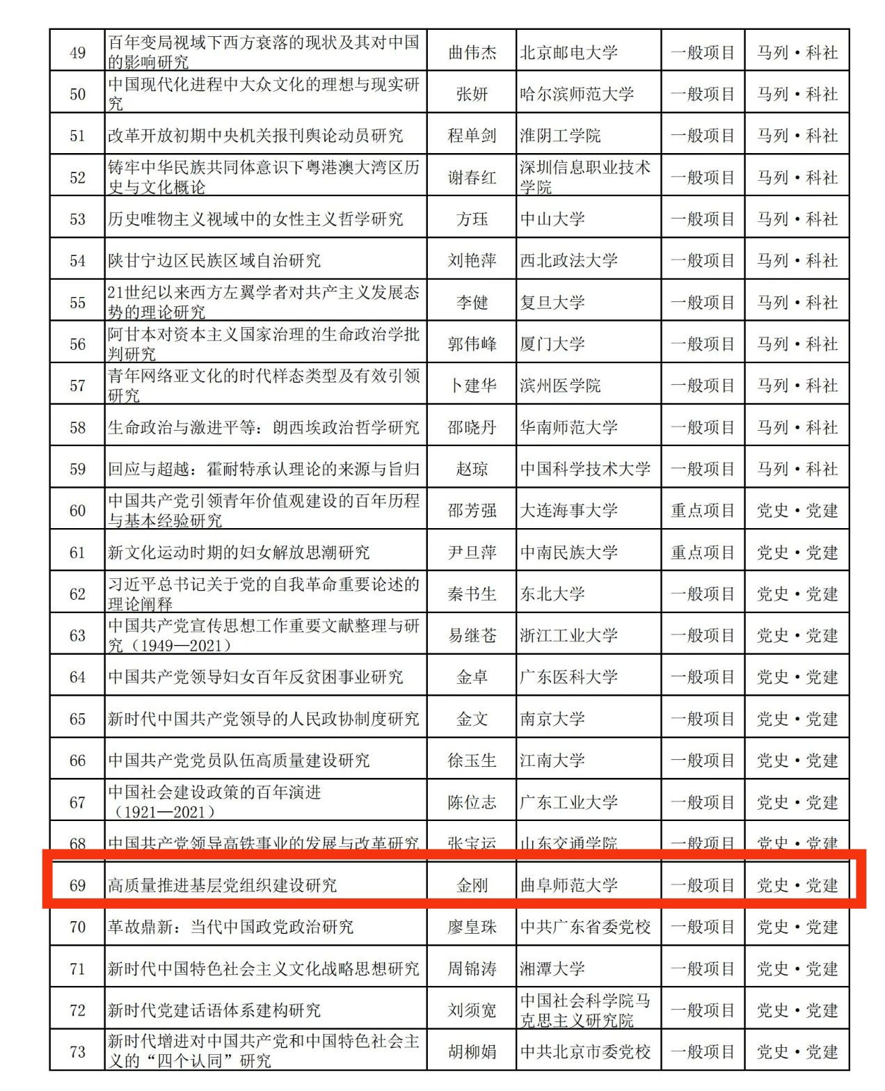 全国哲学社会科学工作办公室陆续公布了2022年国家社科基金各类项目立项成果,今年成人短视频 共有三项课题获得立项。其中,孙晓光教授的“近代列强南海政策与中国海洋权益维护研究(1840—1949)”,获国家社科基金重大项目立项;金刚教授的“高质量推进基层党组织建设研究”,获国家社科基金后期资助项目;张俊成副教授的“东周五系金文比较研究”,获国家社科基金一般项目。