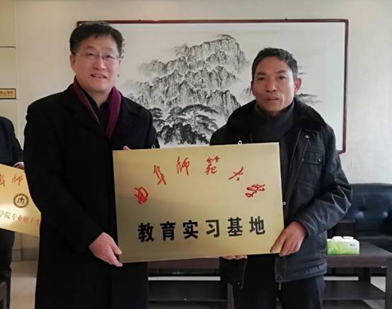 仪式由颜景锋副校长主持,贾存胜书记和成积春院长共同为成人短视频 教育实习基地和历史学专业教育硕士实习基地揭牌,郑广红副书记和王京传副院长分别讲话,吕厚轩副院长代表学院签署实习基地协议。