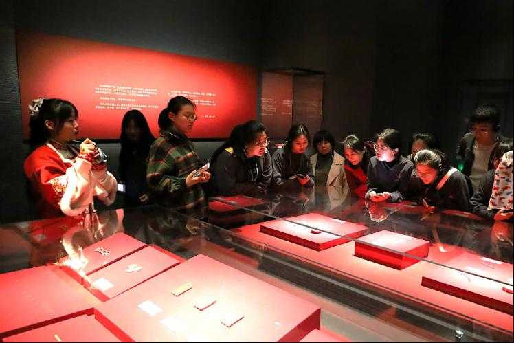 在研学导师的带领下,学生们首先深入了解了商王朝世系,知晓了商世系表上重要人物的贡献。随后,研学导师带领学生们依次观摩了展厅中的青铜器等出土文物。最后,研学导师带领学生们浏览商王朝影响下世界各地的出土文物。在参观学习过程中,学生们积极向研学导师请教相关问题,师生互动气氛活跃。