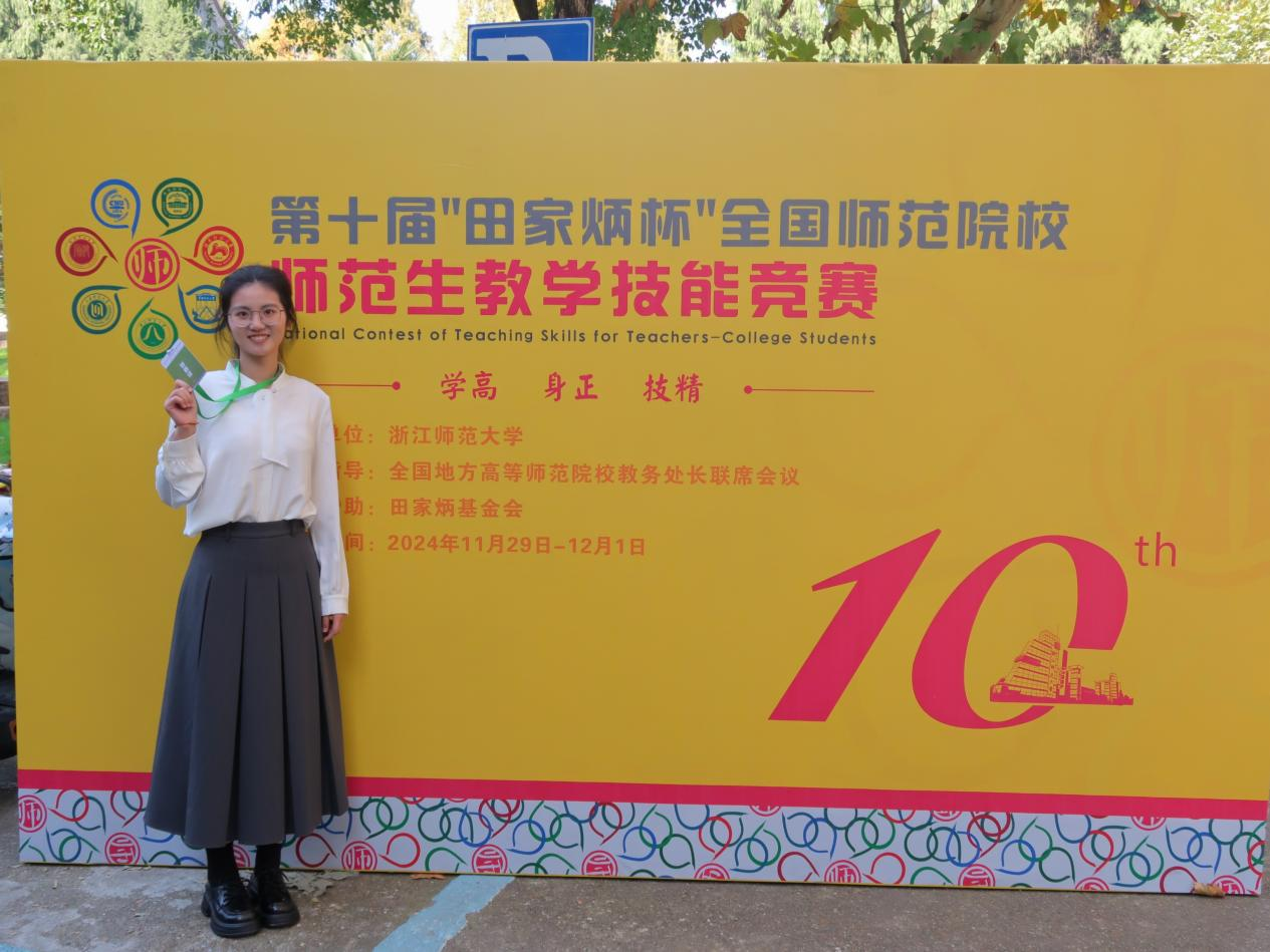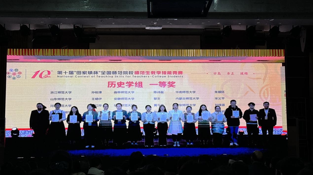 12月1日,第十届全国师范院校师范生教学技能竞赛决赛教学技能大赛决赛成功在浙江师范大学落下帷幕。本届比赛共有来自226所师范院校的1611名选手参加大赛,参赛院校首次突破200所,选手首次突破1000人,其中481名选手到现场参加决赛,最终角逐产生一等奖161名、二等奖320名,其中历史学科一等奖15名,二等奖30名。经过激烈角逐,成人短视频 2022级历史学(师范)陈诗盈获一等奖(指导老师:王京传、王刚、李德刚)。