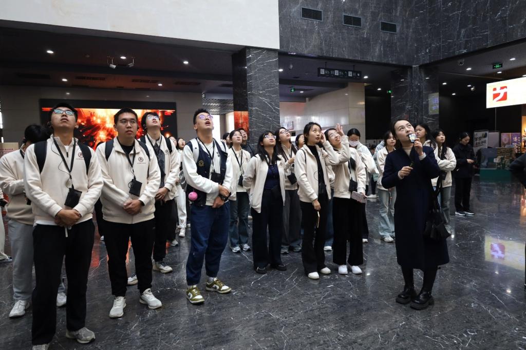 上午9时,全体师生抵达博物馆。在讲解员引导下,依次参观了甲骨文、金文、小篆等专题展区。通过实物展品、高清影像及互动技术,让学生直观了解了汉字从商周甲骨文到秦汉小篆的演变脉络,以及不同历史时期文字的形态特征与文化功能。甲骨文展区通过复原商代占卜场景,生动呈现了文字与早期社会生活的紧密关联。参观期间,学院带队教师及讲解员老师与同学们进行实时交流,结合展品详细讲解文字学研究方法。博物馆展示的数字化保护成果,如三维扫描与虚拟复原技术,也引发了同学们对科技与人文融合的思考。