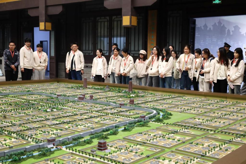 邺城博物馆以汉代建筑风格为基调,是展示邺城从史前至北齐历史文化的重要窗口。在讲解员的引导下,师生们逐一考察馆内珍贵遗存:从东汉至北齐的陶器、瓷器中,窥见当时的手工业水平与社会生活风貌;在邺城建筑构件、墓室壁画复制品前,研讨后赵、冉魏、前燕、东魏、北齐等政权在邺城建都的历史脉络。同学们在文物前比对历史细节,结合课堂知识展开讨论。同学们纷纷表示,此次活动让“三国故地”“六朝古都”不再是课本上的抽象概念,而是可感、可触、可思考的鲜活历史。