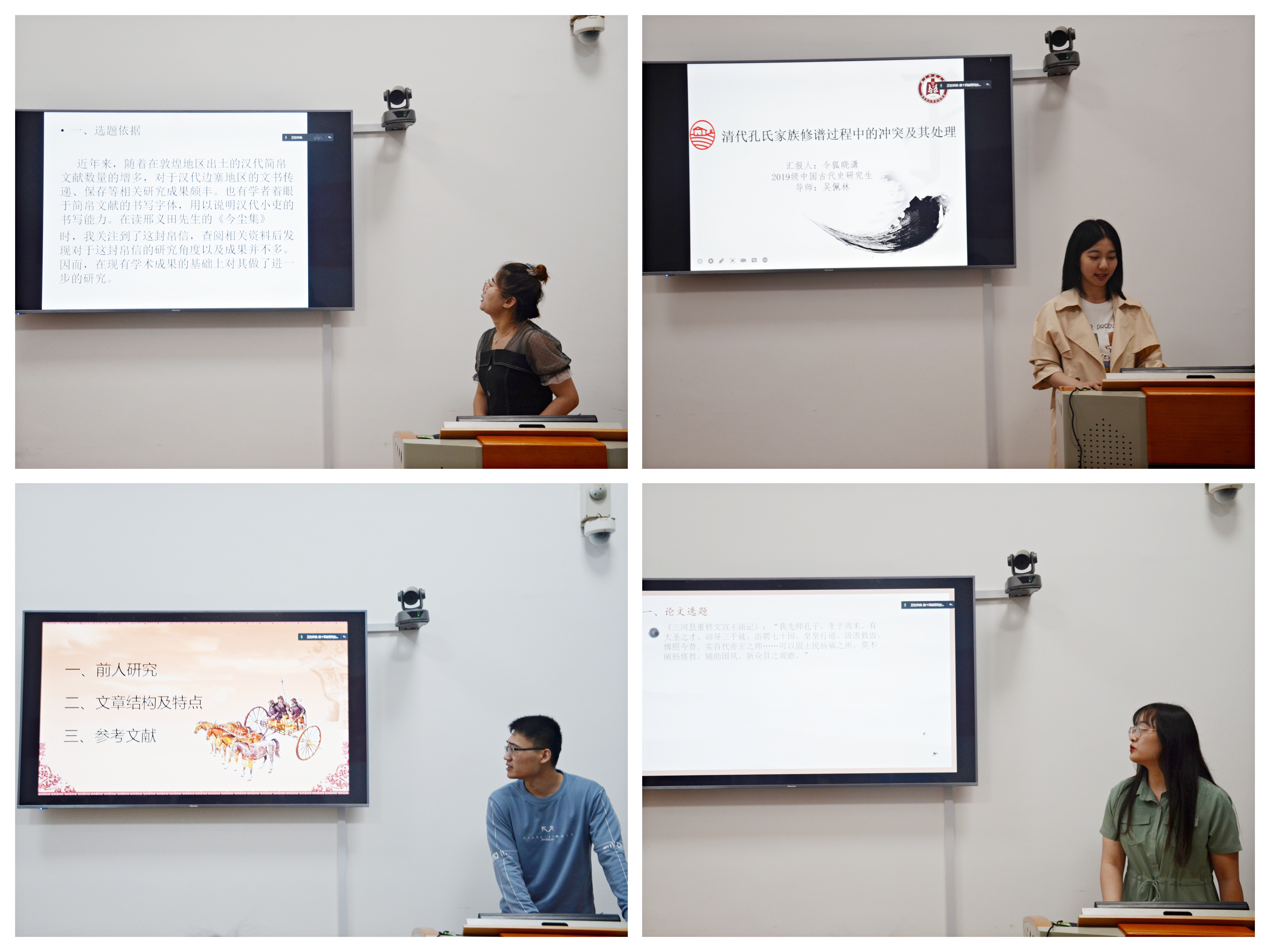 最后各位选手讲解完毕后,刘伟老师进行了总体点评。他首先肯定了各位参赛选手的态度端正,继而指出了选手的写作水平存在一定差异,强调了同学们在选题、题目拟定与结语部分存在的问题。吕厚轩老师作了总结,他鼓励研究生应当多多参加学术活动,锻炼写作能力,提高学术水平,在学院营造浓厚的学术氛围。