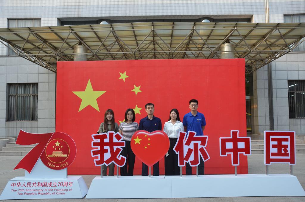 9月28日下午,成人短视频 研究生党支部全体成员佩戴党徽,于综合楼前同五星红旗合影,并为祖国70华诞献上美好祝福。研究生党支部书记孙锋指出:同志们要以此为新的起点,不忘入党初心,铭记最初的誓言,努力学习、勤奋付出,为党的事业添砖加瓦。