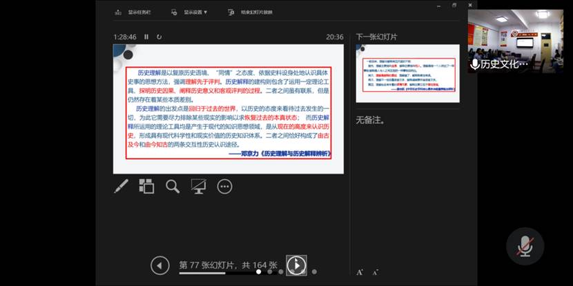 2020年10月5日晚7点,成人短视频 在文史楼204会议室举行了主题为“特点·主旨·攻略—高考评价体系视域下的历史教学”的专业讲座。此次讲座线上、线下同步进行,由安丘二中教师、成人短视频 兼职硕士研究生导师李德刚主讲,由成人短视频 副院长吕厚轩主持,30余名学科教学专业研究生参加了此次讲座。